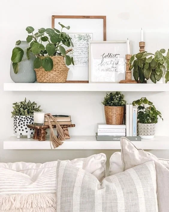 Have you ever tried to fill a blank page? It can be overwhelming and sometimes you just need somewhere to start. Look at Pinerest or your favorite magazine and see what inspires you when building your shelving decor.